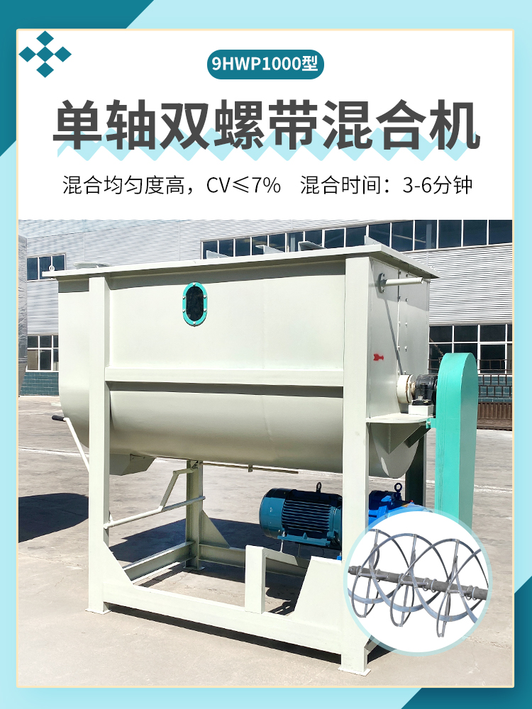 單軸雙螺旋混合機:9HWP1000型,功率15kw,cv≤7%,混合時間3-6分鍾(zhōng)。
