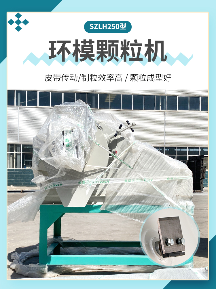 環模顆粒機:SZLH250型,功率22kw,搭(dā)配3kw的調速(sù)喂料器和2.2kw的單(dān)層調質(zhì)器。