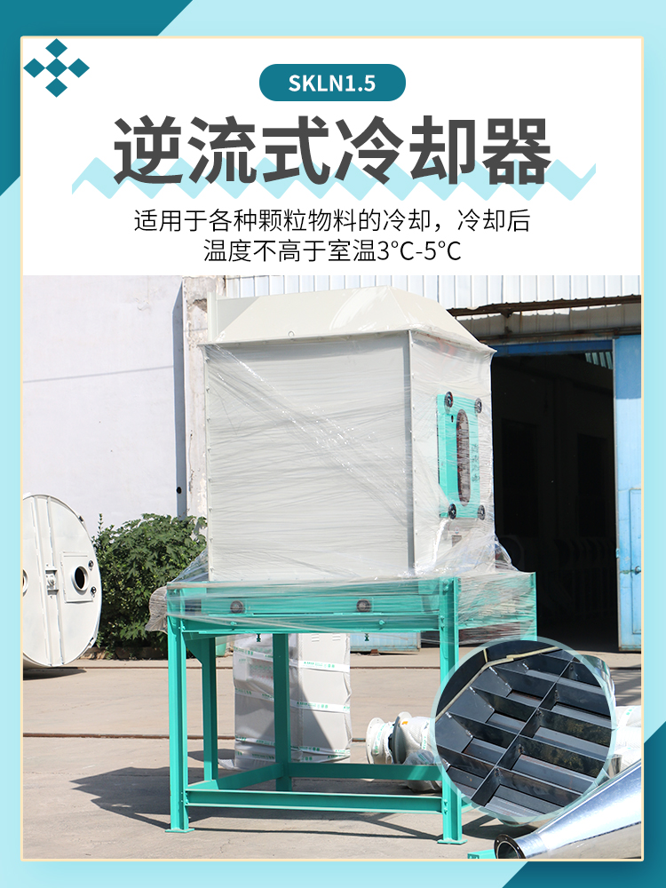 逆(nì)流冷卻器:SKLN1.5,功率1.1kw,作為生產製作飼料顆粒過(guò)程中必不可少的冷卻設(shè)備(bèi),可(kě)以有效防止成(chéng)品顆粒飼料變形(xíng)破碎的同時,還(hái)能防止貯藏時顆粒料產生粘結和黴變。