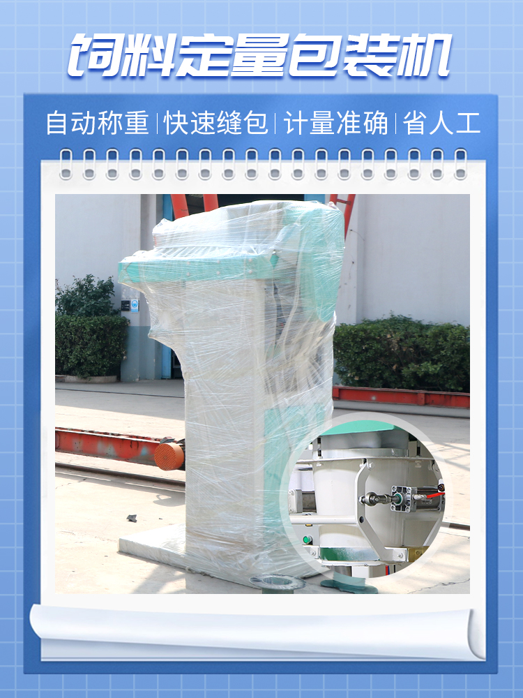 飼料定量包裝機采用稱重、打包、縫包一體式設計,自動化(huà)程度高,操作簡便,計量精確度高。