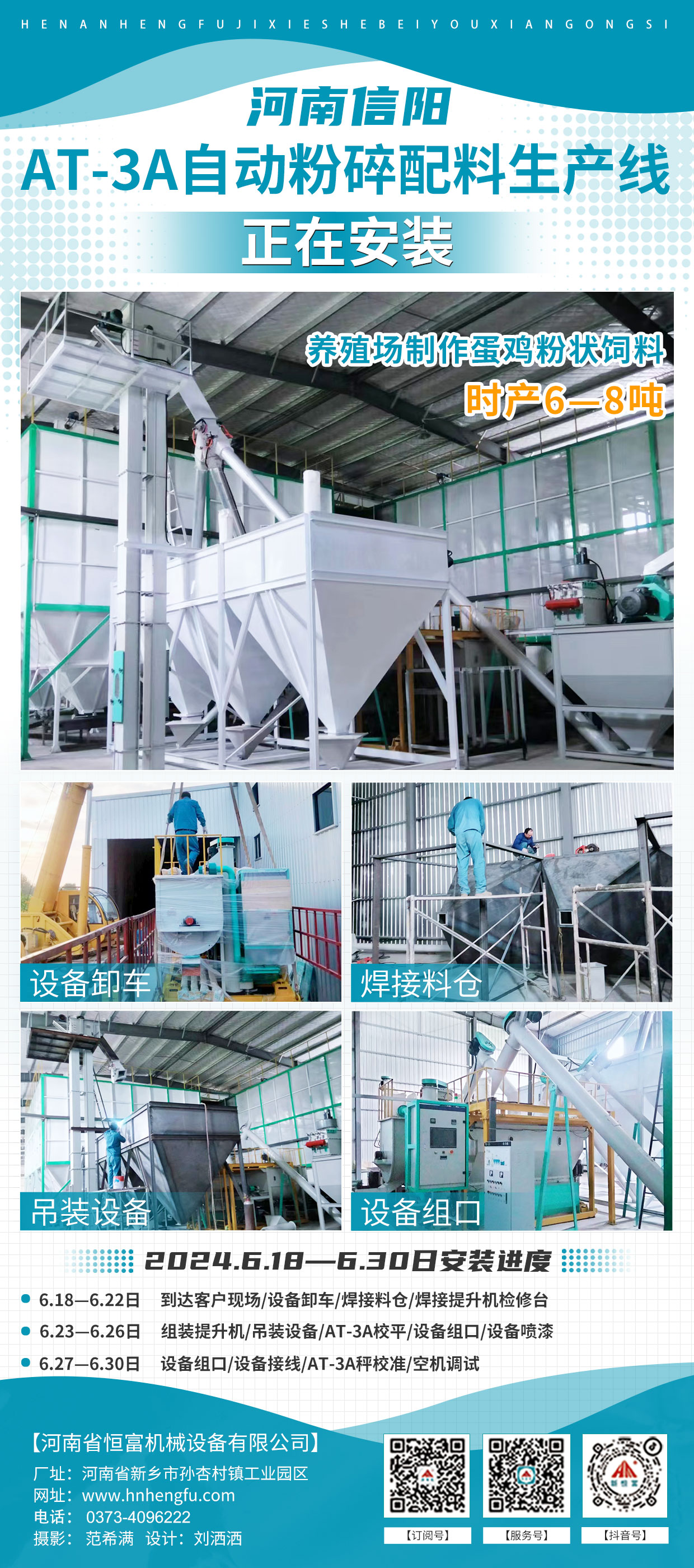 正在安裝的設備:河(hé)南信陽AT-3A自動粉碎配料生產線。