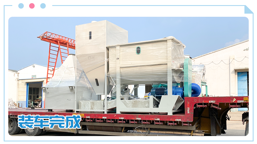 河南駐馬店(diàn)--時產2噸(dūn)臥式粉狀飼料加工機組,已裝車(chē)完成,順利發車