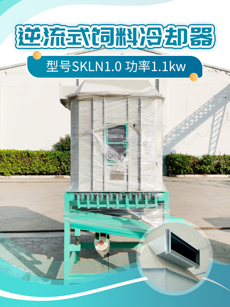 逆流(liú)式冷卻器,通(tōng)常安裝在環模顆粒機後端(duān),主要是利用物流與氣流的相(xiàng)對運動來把高溫度、高濕度的顆粒飼料進行烘幹和冷卻,使其成為(wéi)可(kě)以易儲存和包裝的成品飼料。