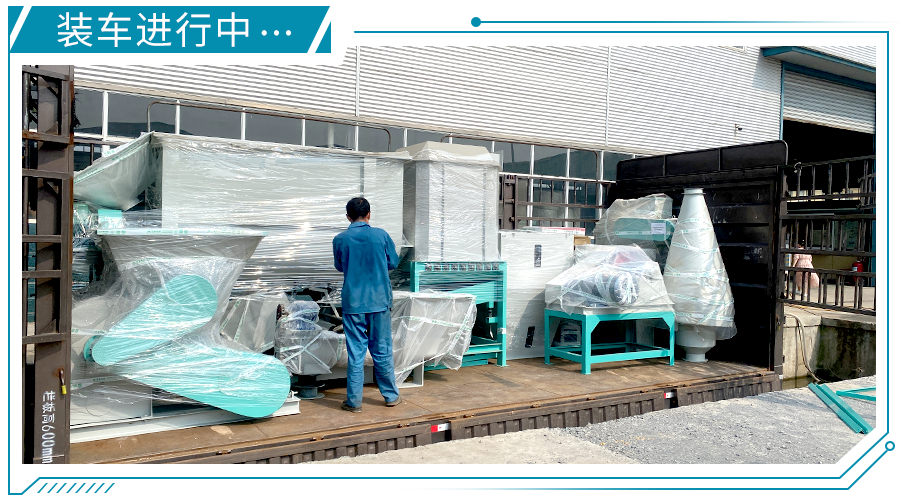 廣東汕尾--時產3-5噸粉狀飼料加工機組,現已裝車完成,順利發走!
