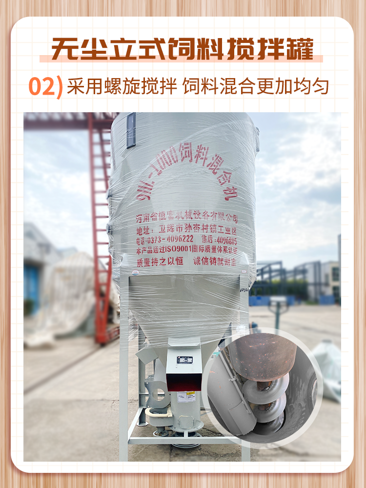 立式混合機(jī)適合中小型養殖場使用,可(kě)混合精粉料(liào)可(kě)以混合草粉料(liào)。該設備(bèi)占地麵積小、結構簡單、操(cāo)作方便。