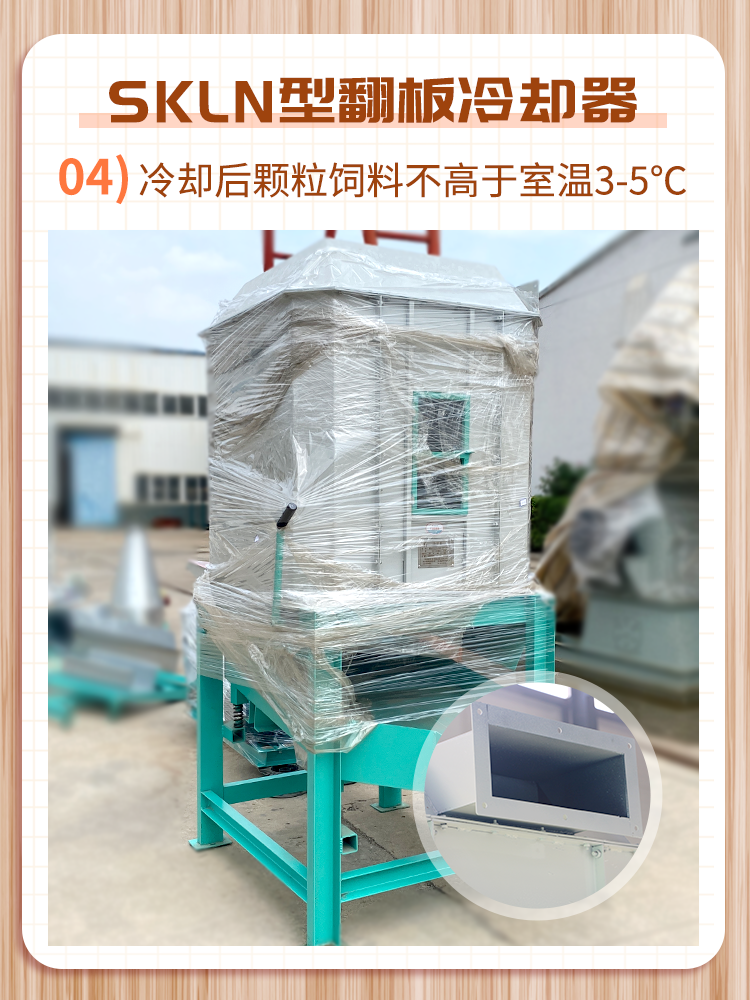 逆流(liú)翻板式冷卻器專為大(dà)中型養殖場、飼料加工廠設計,可將高溫高(gāo)濕的顆粒飼料在短時間內降溫除濕,達到儲存條件。