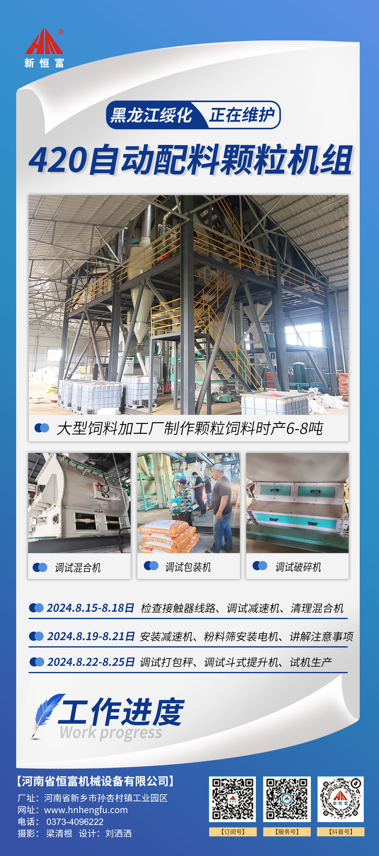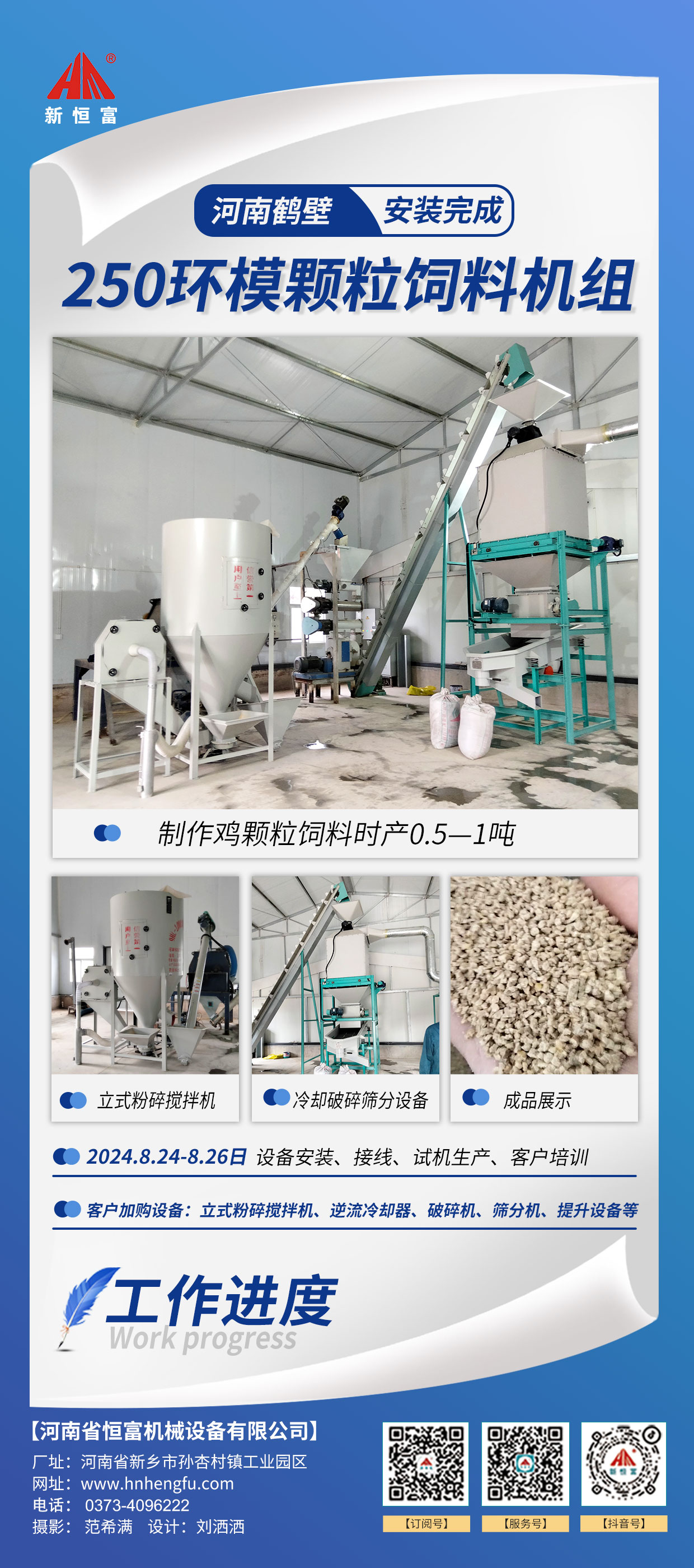 河南恒(héng)富機械-成套飼料加工設備安裝(zhuāng)進度【2024-08-13】