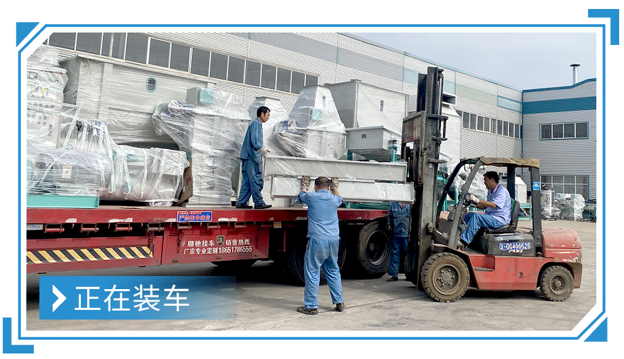 廣東汕(shàn)尾(wěi)--時產3-5噸粉狀飼料加工機組,現已裝車完成,順利發走!