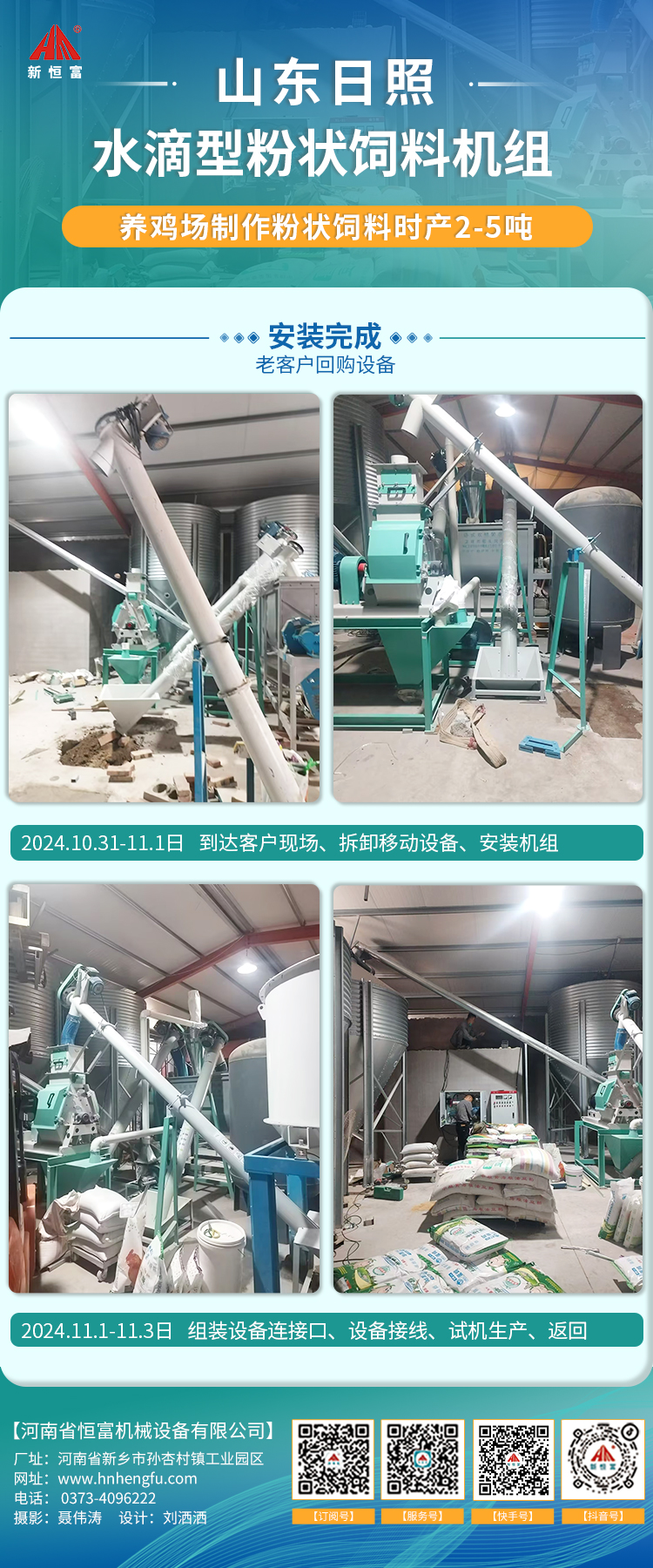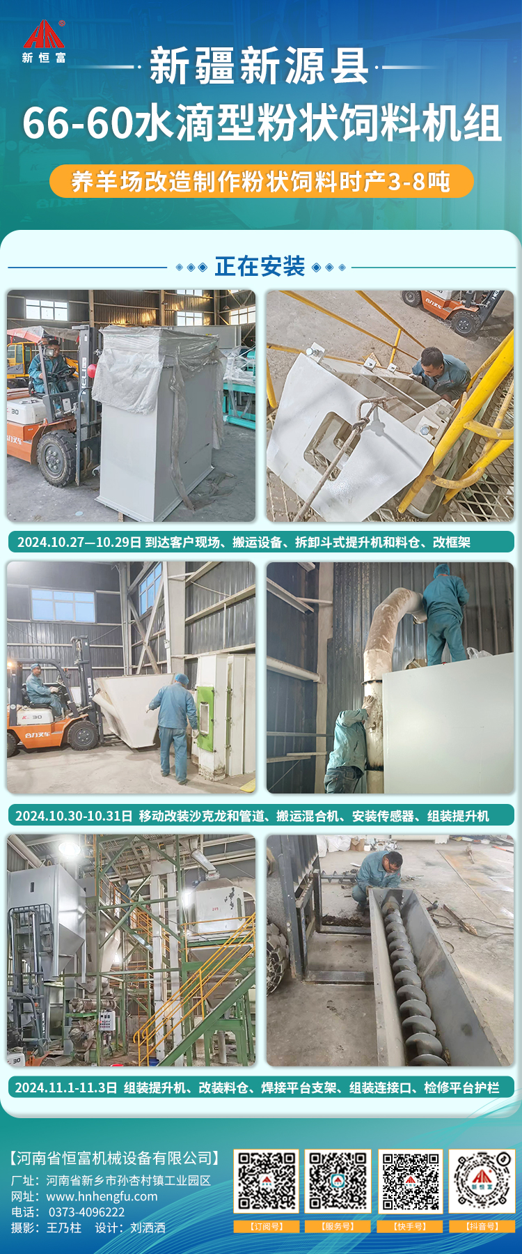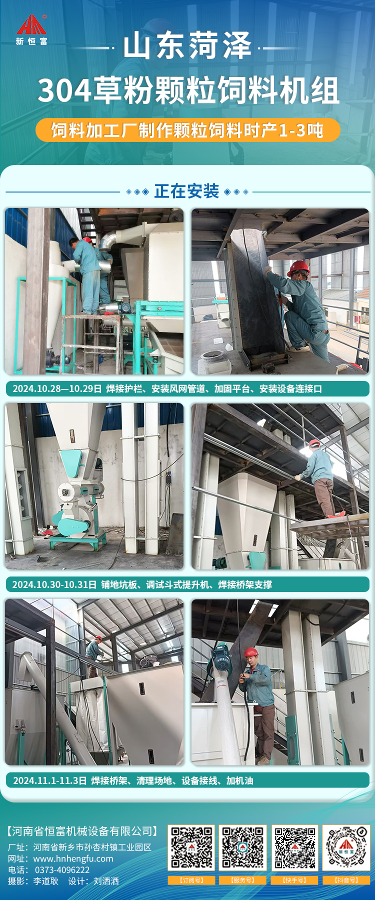 河(hé)南恒(héng)富機械-成套飼料加(jiā)工設備安裝進度【2024-10-15】