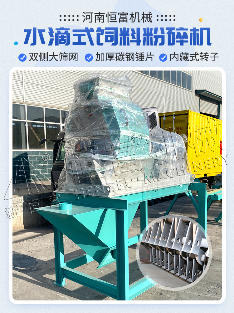 水滴式係列粉(fěn)碎機可粉碎各種顆粒(lì)狀飼料原料,如玉(yù)米、高粱、麥類、破碎後的餅(bǐng)類等物料,可粗(cū)粉也可細(xì)粉。