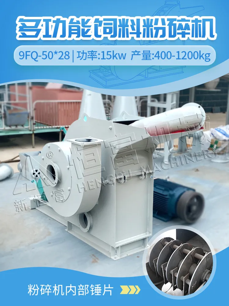 可做到一機兩用,既能粉碎如:玉米(mǐ)、高粱等精飼料,又能粉碎如:秸稈、花生秧、牧草、等草飼料。