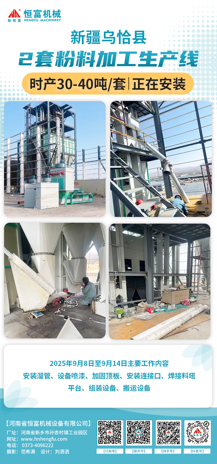 2025年(nián)9月8日-9月14日主要工作內容有:推進(jìn)地麵施工、設備打黃油(yóu)、料倉檢查;設備(bèi)安裝照明,生產培訓;地麵施工(gōng)完成,擺放打包機等設備。