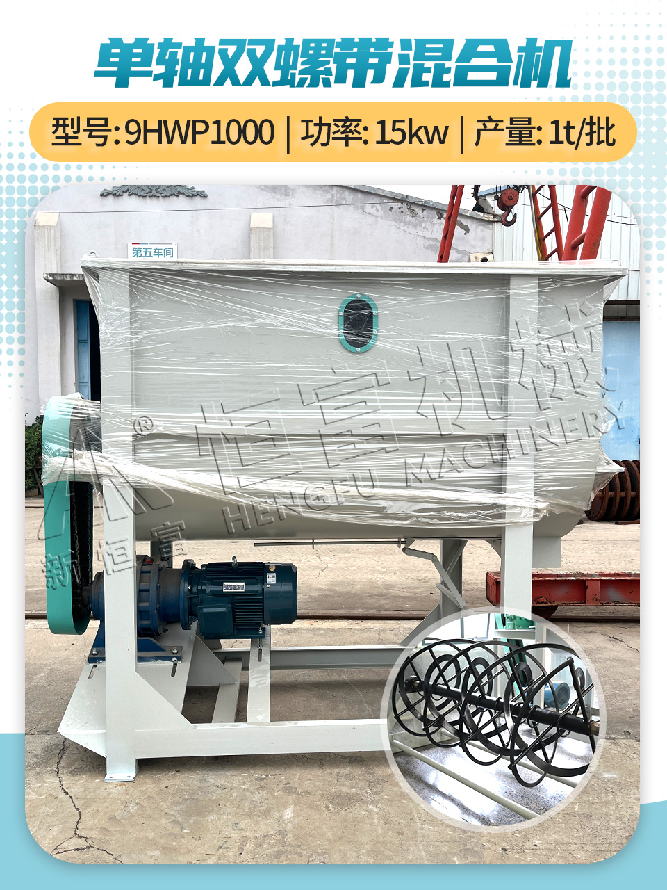 特點:內部采用雙螺旋(xuán)葉片結構,內外四條螺帶,混合均勻度高。