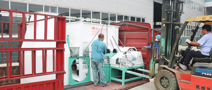 本次發貨的主要(yào)設備有:多功能粉碎機,沙克龍,250環模顆(kē)粒機,脈衝除塵器(qì),單軸雙螺旋(xuán)混合機,關風(fēng)機,螺旋提升機,料倉(cāng),沙克龍,配電櫃等,並根據客戶需求,配備了6mm和8mm的模具各一件。