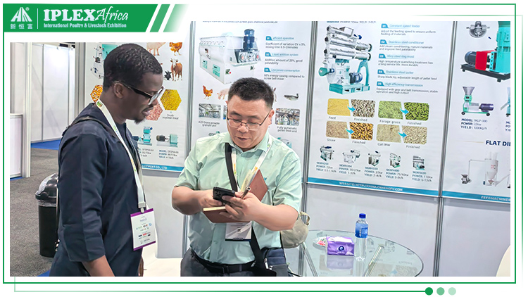 作為非(fēi)洲地區最具規模(mó)和影響力的畜牧行業盛會,本屆IPLEX AFRICA 現場人氣爆棚,交流氛圍熱烈。17.C19起草视频機械憑借適配非洲市場需求的(de)優質(zhì)產品與技術解決方案(àn),成為展會焦點。展位前人頭攢動,自動(dòng)化(huà)養(yǎng)殖設備、精準飼料配方、電控設備係統等展品吸引了大批觀眾駐足體驗(yàn)。