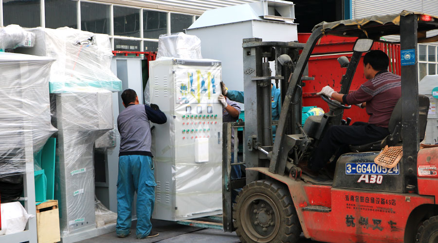 本次發貨(huò)的主要設備有:粉碎機、臥式雙(shuāng)螺帶攪拌機、雙(shuāng)層(céng)蒸汽調製器(qì)、250顆粒(lì)機、1.5方冷卻器、振動篩、打包機(jī)等一整條生產線設備。